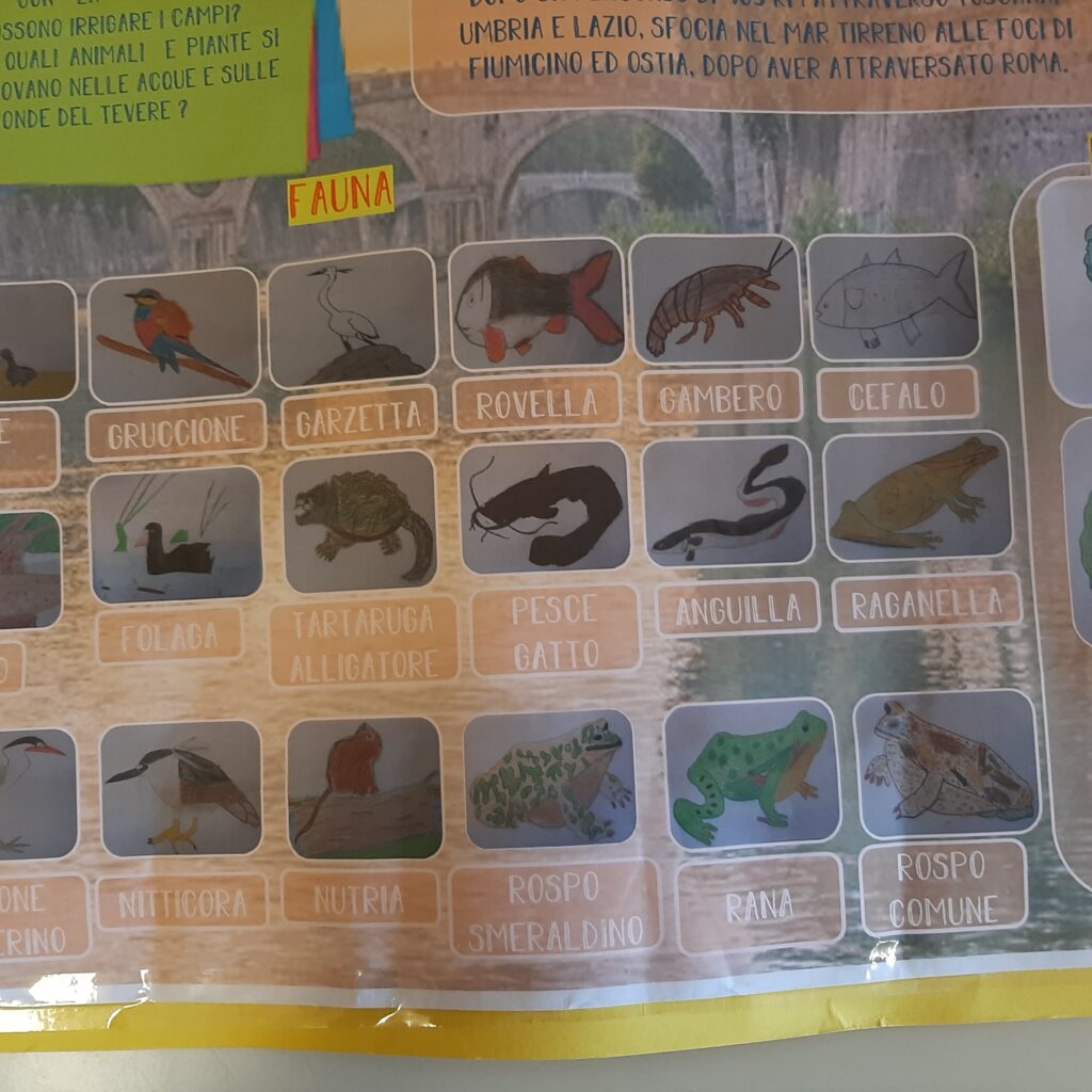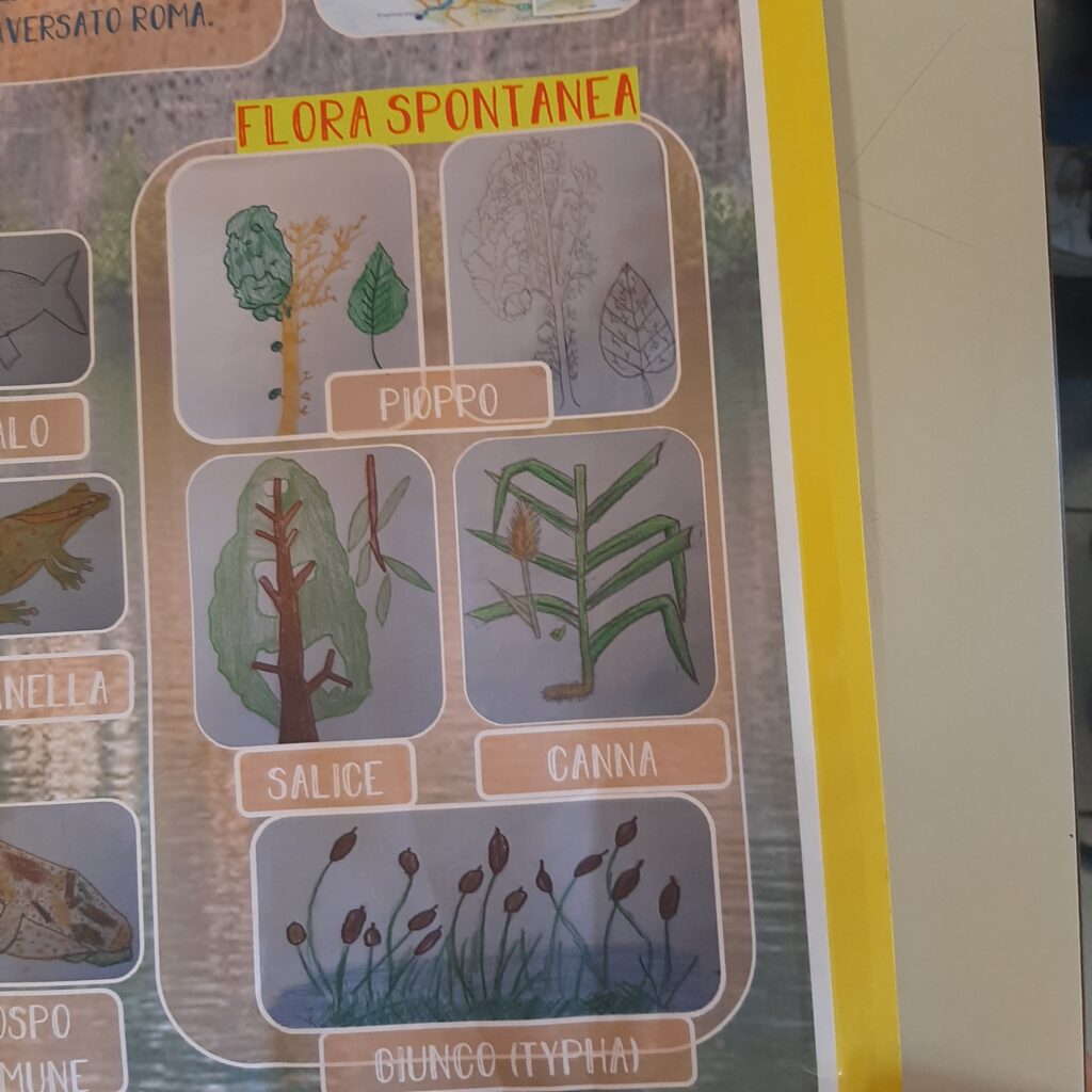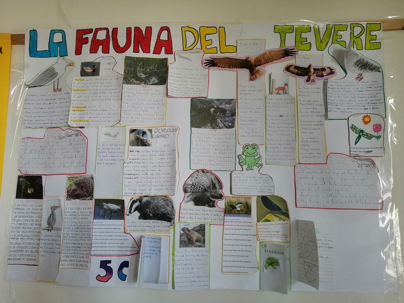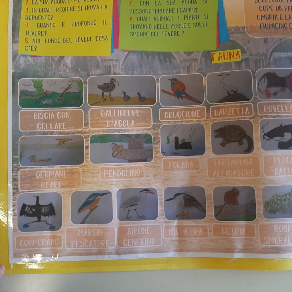 Le foto del cartellone realizzato dai bambini della 4B sulla flora e la fauna del fiume Tevere