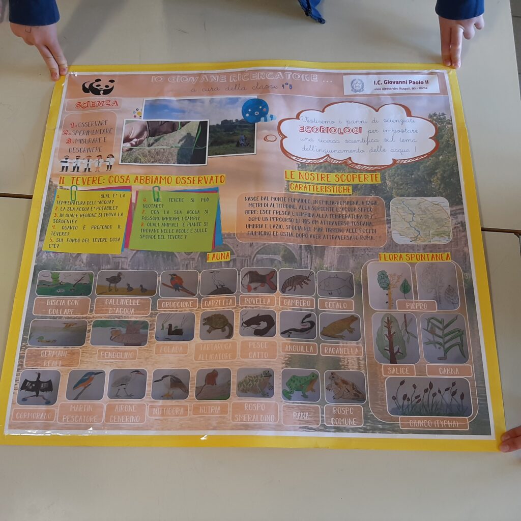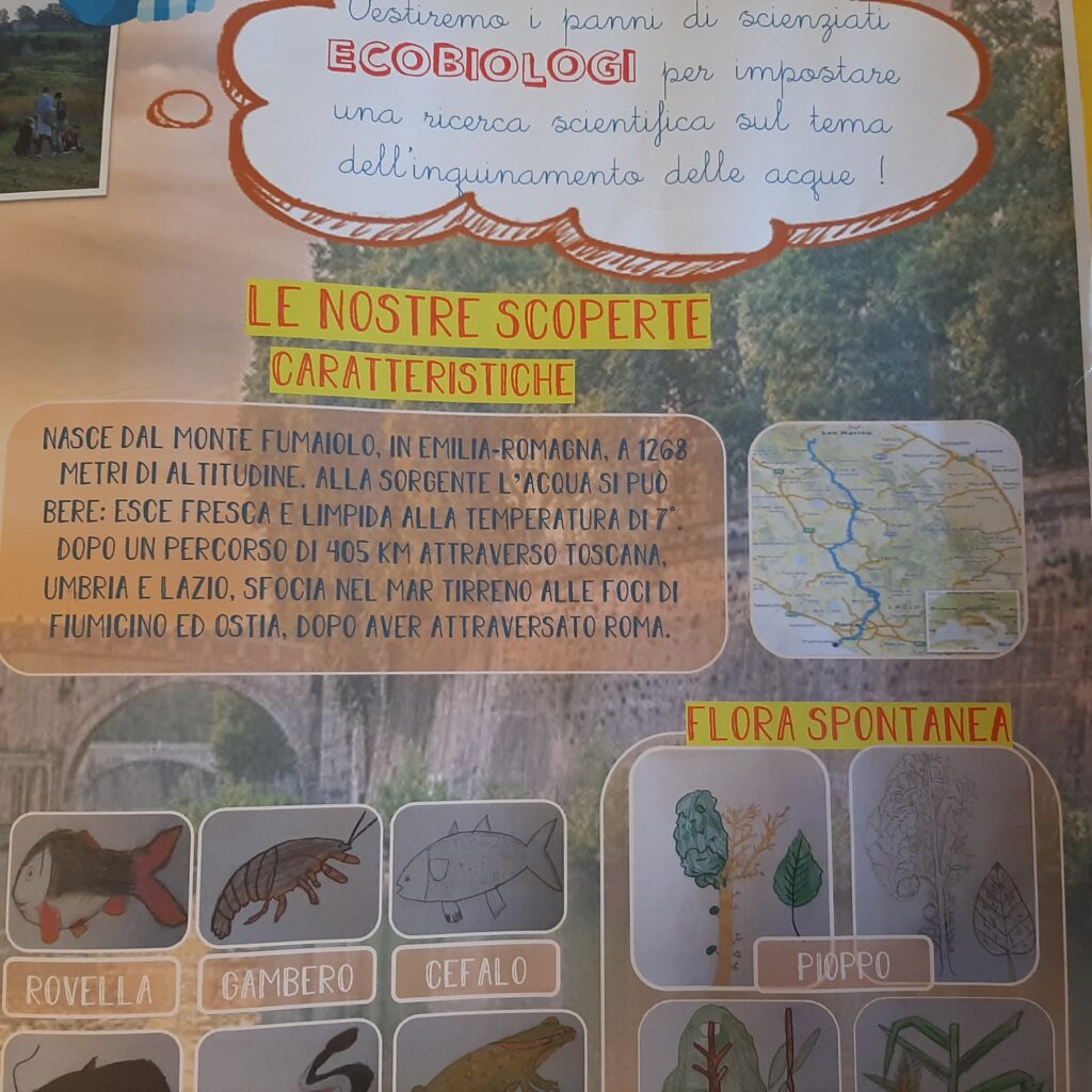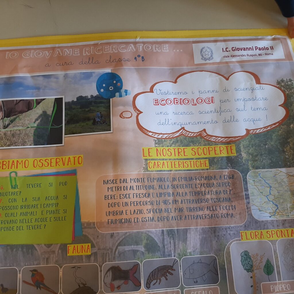 Le foto del cartellone realizzato dai bambini della 4B sulla flora e la fauna del fiume Tevere