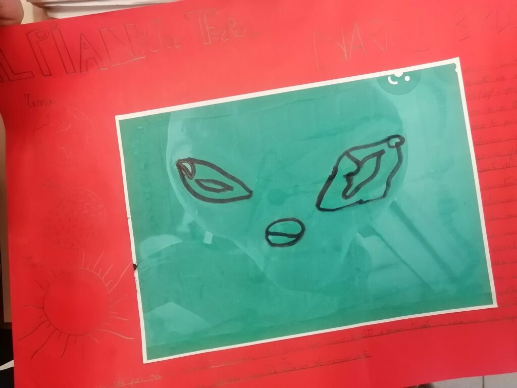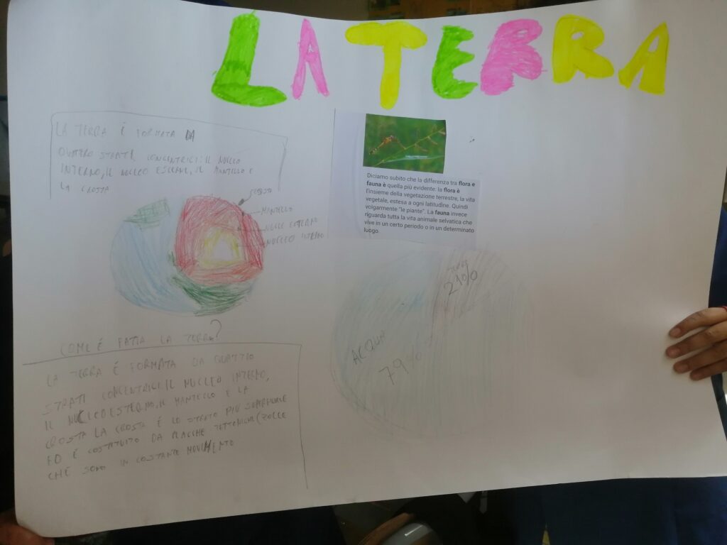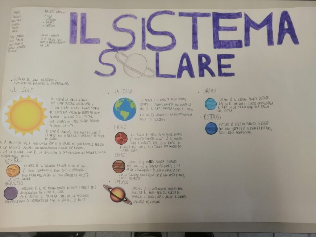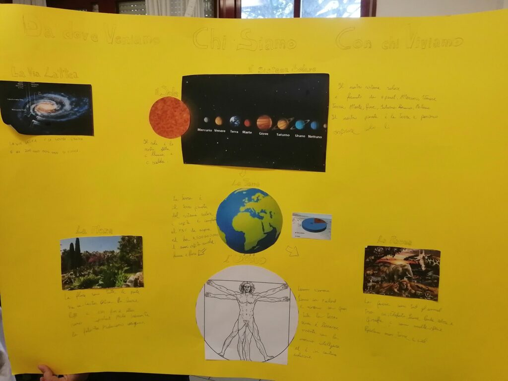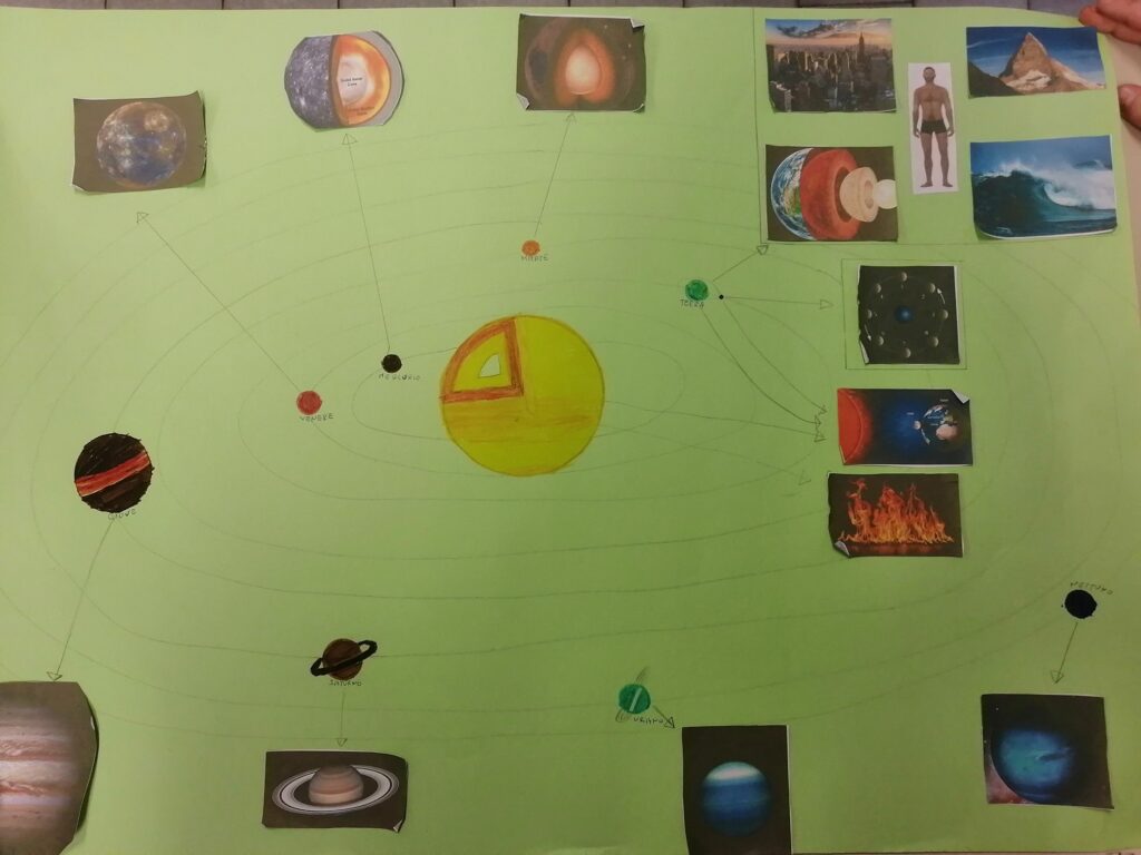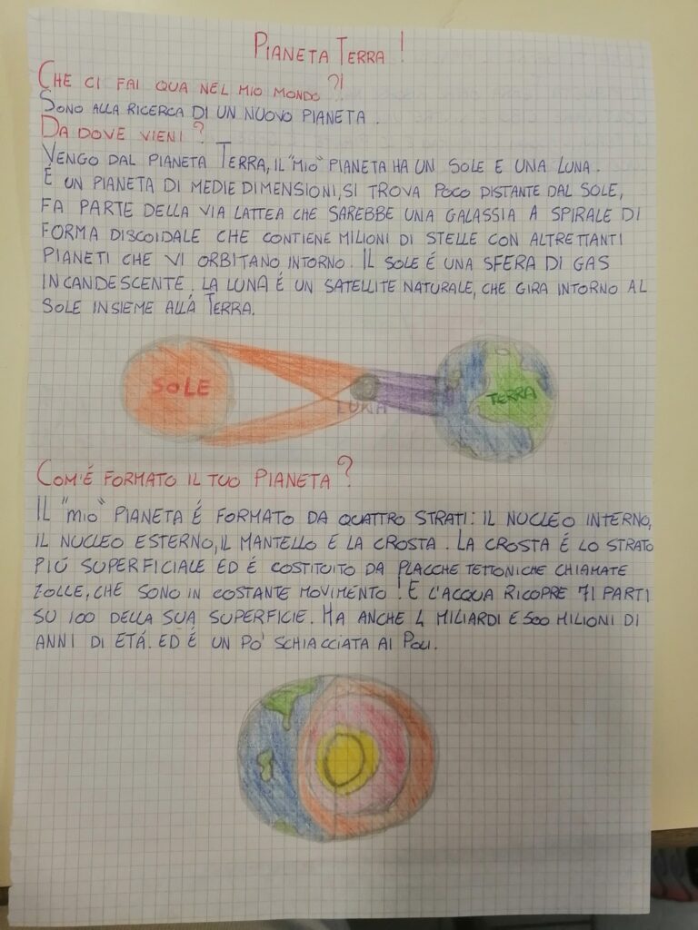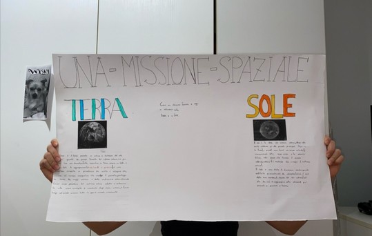 Nella classe 5C c’è una missione spaziale in partenza con il compito di trasportare informazioni riguardanti il Pianeta Terra e il Sistema Solare perché potrebbe incontrare altre forme di “vita intelligente”. Ogni alunno è stato scelto per preparare un cartellone attraverso il quale deve comunicare con queste forme di vita…
