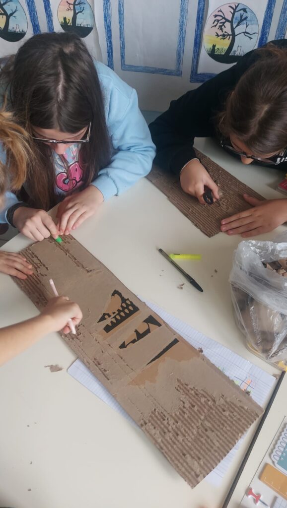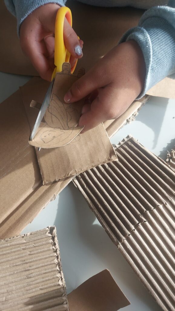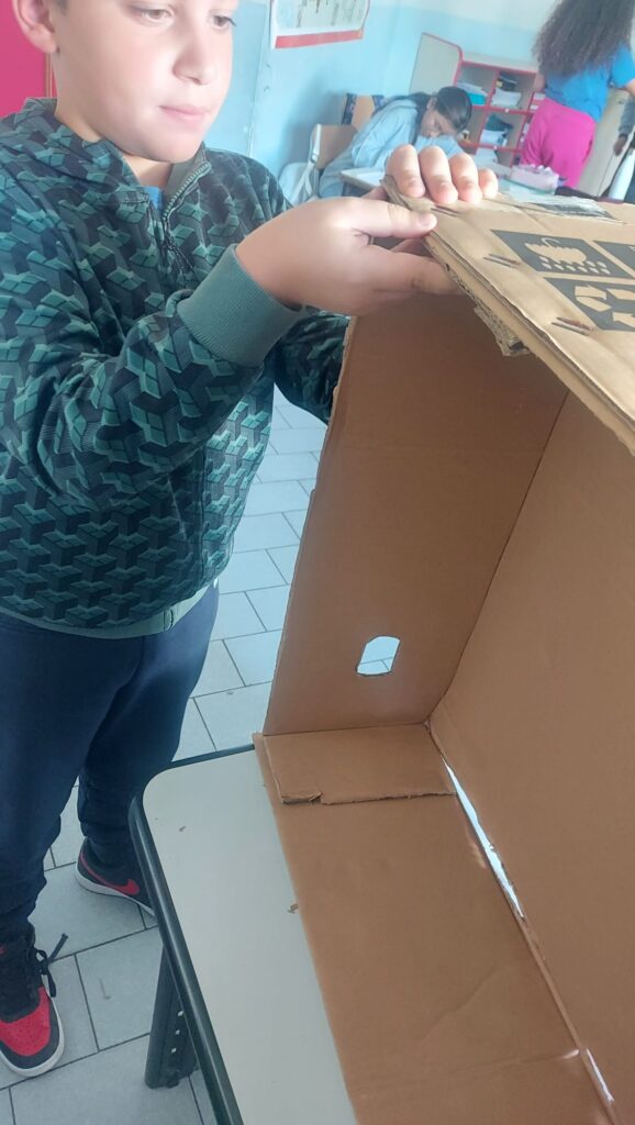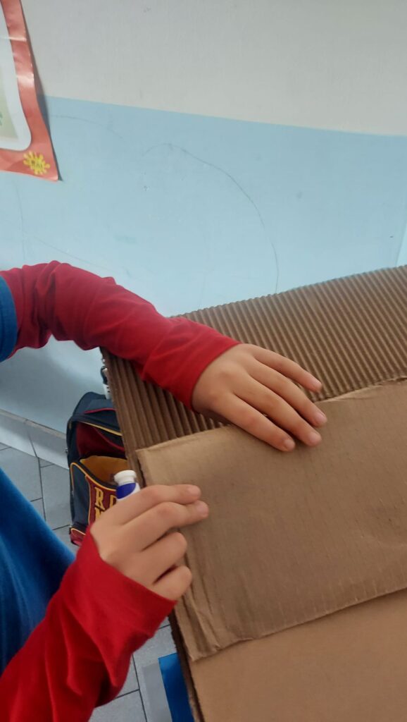 Cosi con la maestra abbiamo iniziato a fare delle proposte utili alla realizzazione, chiaramente dovevamo trovare il modo di utilizzare tutto il cartone.