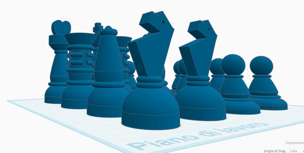 Per la modellazione 3D degli scacchi, gli alunni hanno utilizzato il Programma online gratuito Tinkercad, sviluppato da Autodesk che permette di creare modelli tridimensionali utilizzando una varietà di forme geometriche e strumenti di modellazione. I modelli creati sono Stati poi esportati e stampati utilizzando una delle stampanti 3D in dotazione alla nostra scuola.