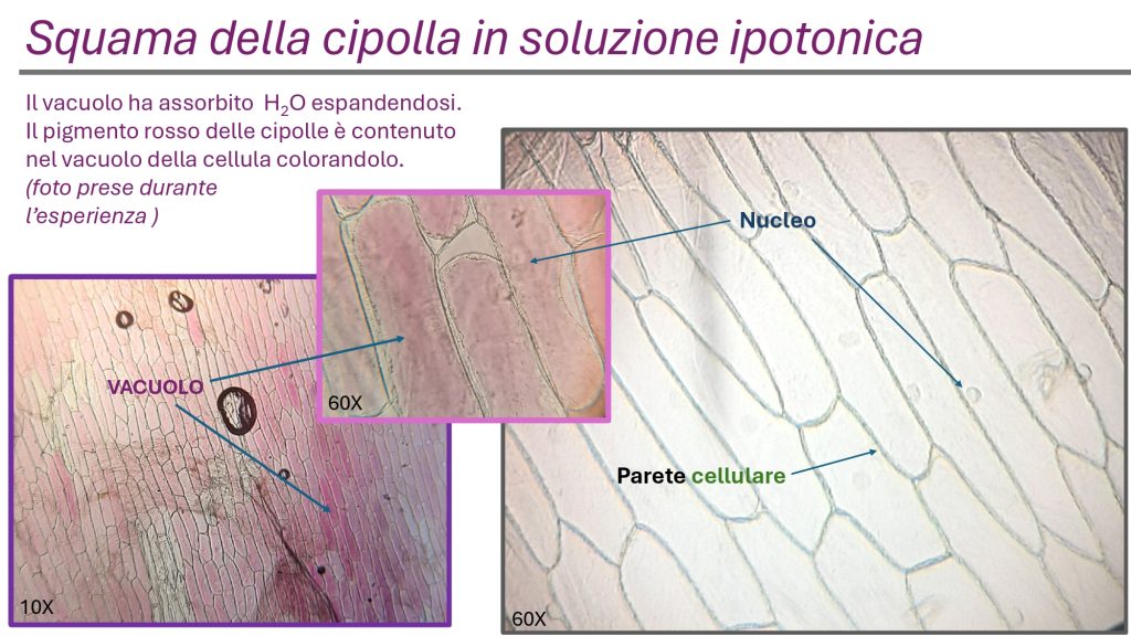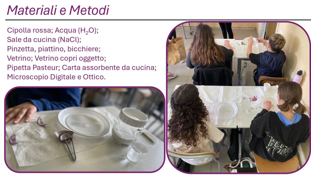 I ragazzi della scuola secondaria dio primo grado hanno sperimentato un’esperienza di laboratorio di microscopia sulle cellule vegetali: in particolare hanno osservato l’osmosi cellulare che regola il flusso dell’acqua. Sezionando una cipolla per poterla sistemare sui vetrini ed osservarla al microscopio hanno potuto osservare la struttura delle cellule e il processo di osmosi.